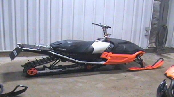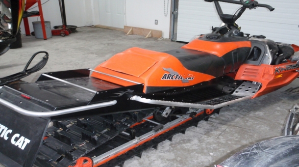 Arctic Cat Tunnel Powder coated black, set up for aggressive boondocking and hillclimbing. Footing position is lowered for a lower centre of mass weight easier for carving and making quick manouvers on the hill.