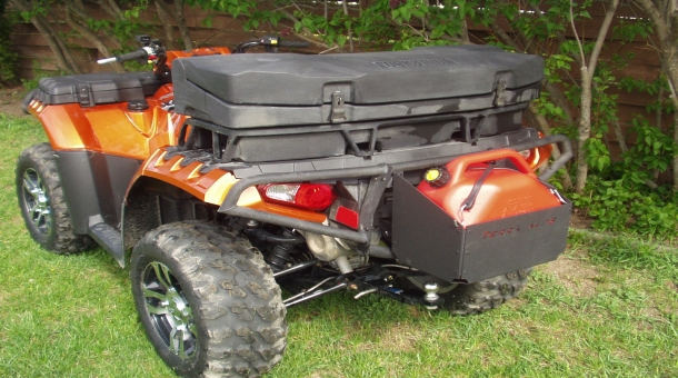 2009 Polaris XP 850 5.3 gal / 20L gas caddy, includes rack and gas can.