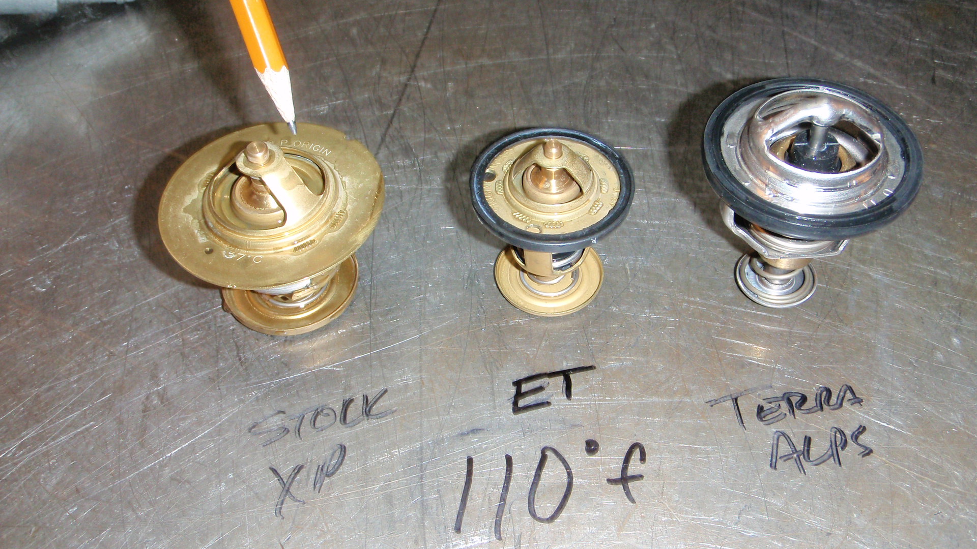 We flow tested our thermostat, the stock XP stat and another companies. We soaked the stats in 130'f hot water til stats were open then flowed 130'f hot water thru them for 1 minute recording how much they flowed. The Terra Alps thermostat flowed 33.4L of water in 1 minute, the stock XP stat flowed 26.05L in 1 minute and the other brand flowed only 11.85L in 1 minute. they advertise there stat is better then stock. It clearly is not better then stock. Only the Terra Alps Racing thermostat kit flows more water and runs cooler then stock. Making more HP!
